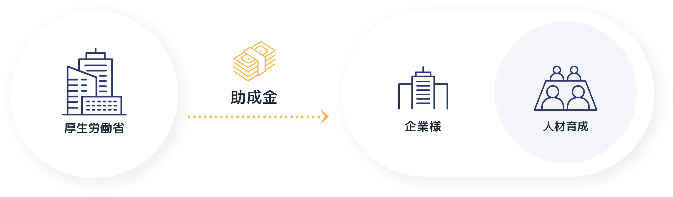 人材開発支援助成金は、企業様が雇用する労働者に対して、職務に関連した専門的な知識及び技能を習得させるための職業訓練等を計画に沿って実施した場合等に、訓練経費や訓練期間中の賃金の一部等を助成する制度です。